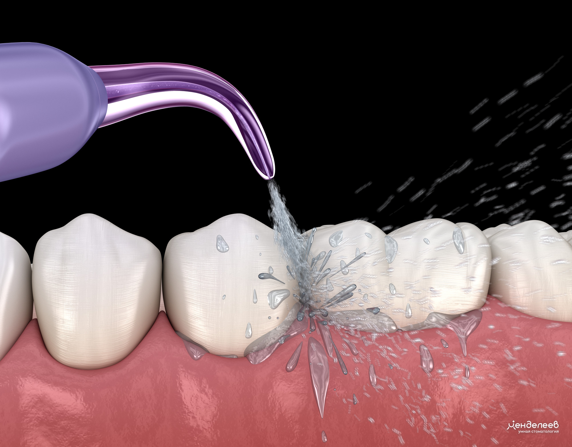 Принцип чистки ультразвуком: в наконечник скалера вставляют насадку, совершающую ультразвуковые колебания. Одновременно с этим в нее подают струю воды. В момент соприкосновения насадки с отложениями, те удаляются с эмали. Благодаря эффекту кавитации (когда волны ультразвука распространяются в воде, образуя воздушные пузырьки), поверхность очищается от остального налёта.