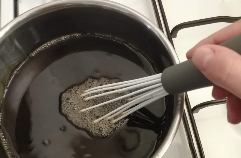 Обычный яблочный пектин из ближайшего супермаркета (высокоэтерифицированный) нужно смешать с используемым в рецепте сахаром и добавить в теплую (но не выше 45 градусов) жидкость. Не забывайте постоянно помешивать венчиком, иначе появятся те самые комочки! После нужно довести жидкость до кипения, выключить, добавить 4 г лимонной кислоты и подождать, пока будущий мусс или мармелад остынет. Лимонная кислота особенно необходима в случае, если блюдо готовится из сладких фруктов с минимумом кислот, к примеру из персиков или абрикосов. Часто лимонная кислота уже добавлена к желтому пектину на производстве: читайте информацию на упаковке!