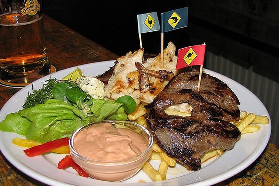 Наиболее популярным сортом мяса в Австралии является говядина. Ее готовят повсеместно. Но и поклонников кенгурятины в стране не меньше. Такое мясо тушат, жарят, используют в качестве начинки для пельменей и пирогов. А самым вкусными деликатесом считает хвост кенгуру.