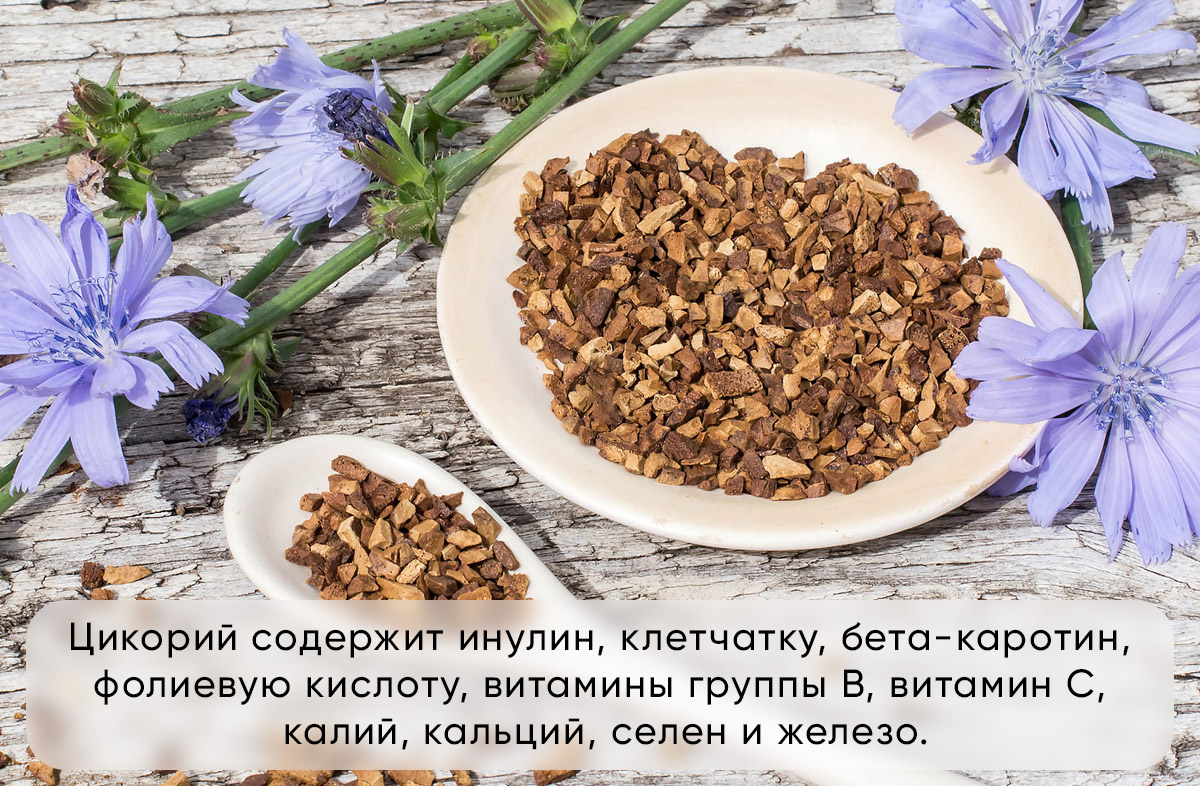 Важный момент заключается в том, что цикорий содержит в себе от 40% до 60% инулина — природного инсулина, что не дает повышаться уровню сахара в крови, что является невероятно ценным при заболевании сахарным диабетом.