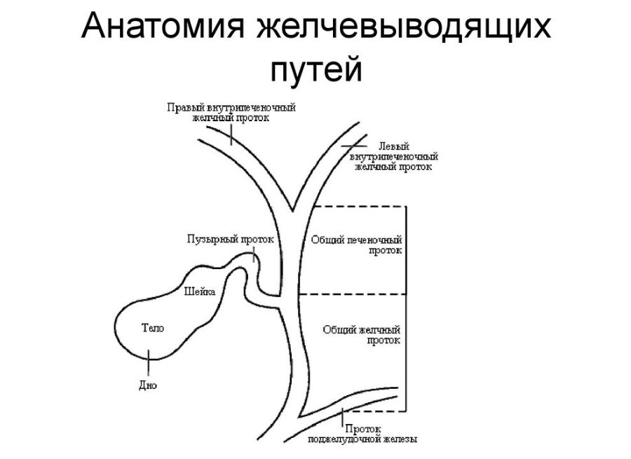 Строение желчевыводящих путей