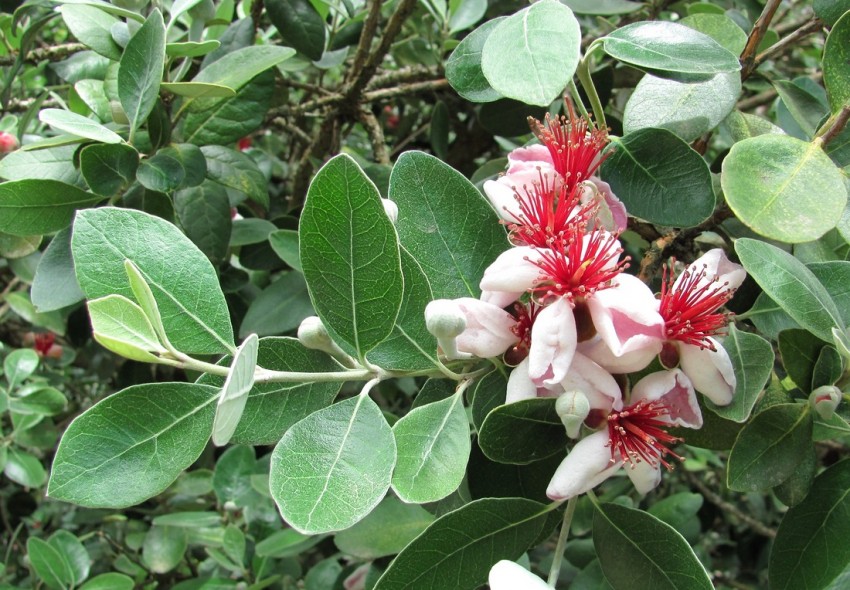 У растения красивые большие цветки, которые цветут довольно долго, а также листья, у которых есть слегка серебристый отлив. Поэтому кусты фейхоа, которые очень красивые, ранее применялись только для декора. Они украшали парки и скверы. Да и сегодня в жарких странах фейхоа отлично справляется с этой задачей.