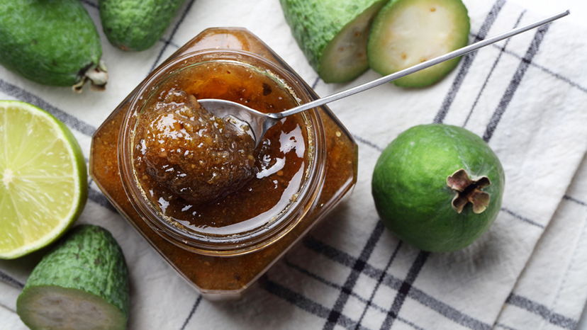 - Соус из фейхоа. Приготовьте соус для заправки блюд с применением фейхоа, чеснока и красного перца. Все ингредиенты измельчают, смешивают и ставят на малый огонь в кастрюле для кипячения. Кипятить следует не менее получаса. Готовность проверяют, пробуя соус на вкус. Также для вкуса можно добавить соль, сахар, перец и прочие пряности и специи.