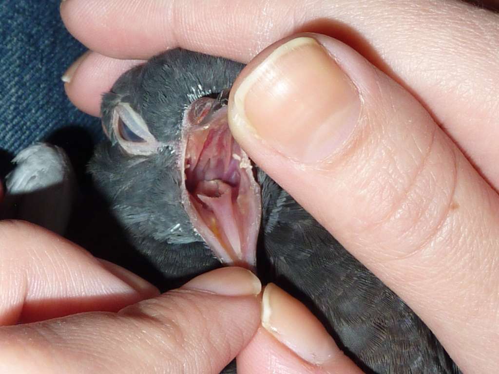 Второе, на что следует обратить внимание, — это цвет дермы. У голубят кожа имеет розовый цвет, а у старых голубей она местами фиолетовая