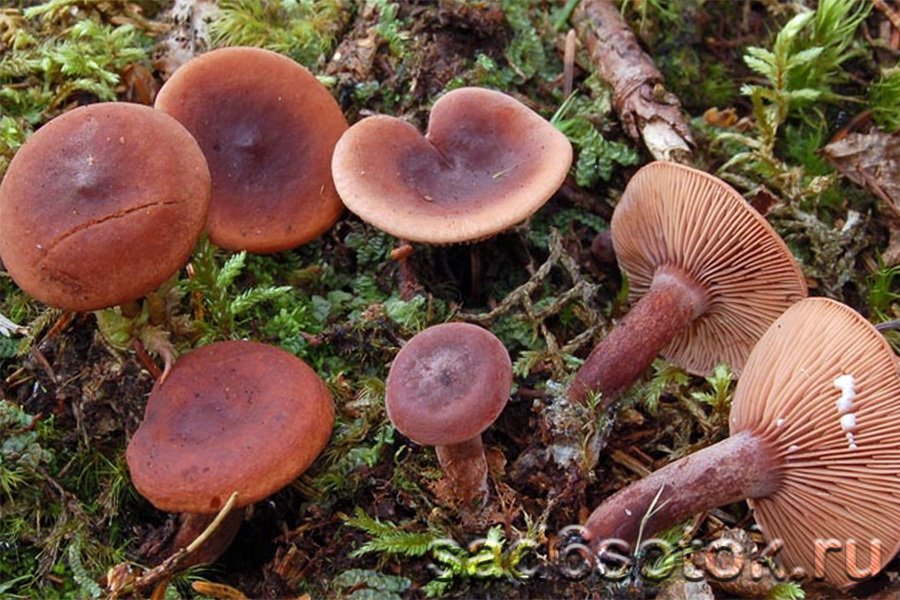 Млечник камфорный чаще растет возле хвойников на сырой мшистой почве и на пропадающей древесине. Шляпка диаметром 5–6 см, выпуклая, затем вогнутая, с волнистым краем, глянцевая, рыже-коричневого цвета. Пластинки розоватые, затем бурые, сходят на ровную тонкую ножку высотой до 5 см, внизу клубневидной формы.