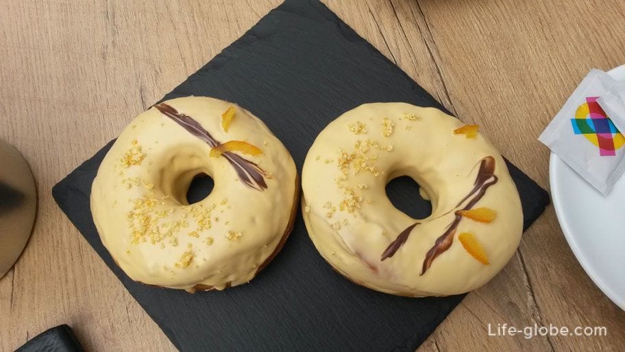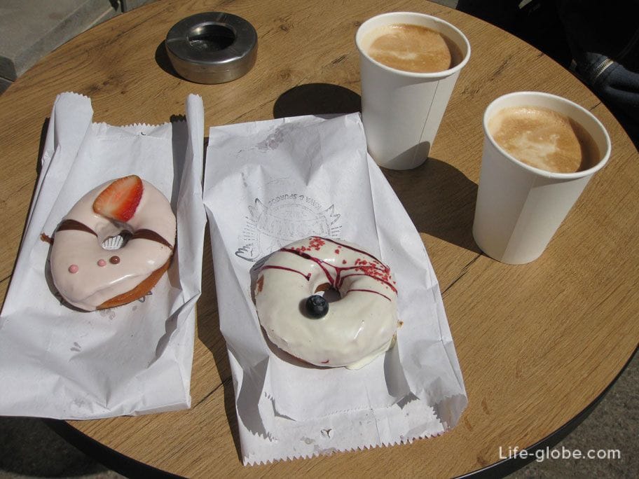 Пончики очень вкусные, что называется «пальчики оближешь», и сытные — один два пончика, и ты наелся на полдня. Шкала цен на пончики начинается от 1 евро за классический и 1,30 евро за пончики с глазурью.