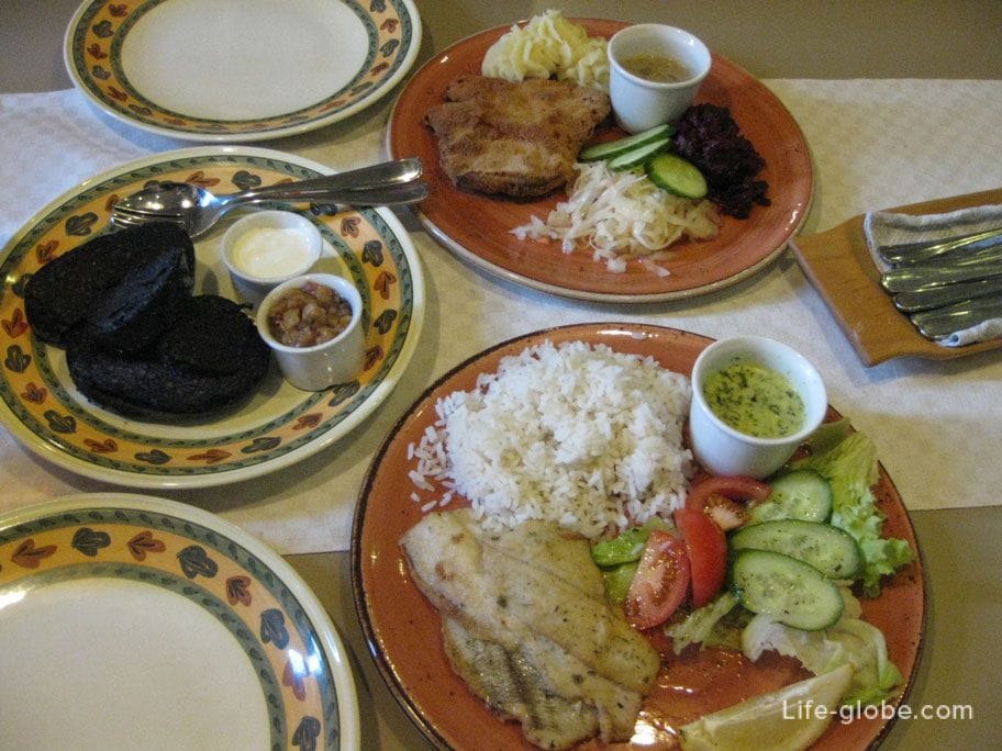 В литовском меню никогда не будет отдельно мясо или рыба и гарнир как в наших ресторанах. Если заказать мясо (рыбу) в Литве, то автоматически к ним принесут гарнир, свежие или соленые овощи и соус. Порции достаточно большие.