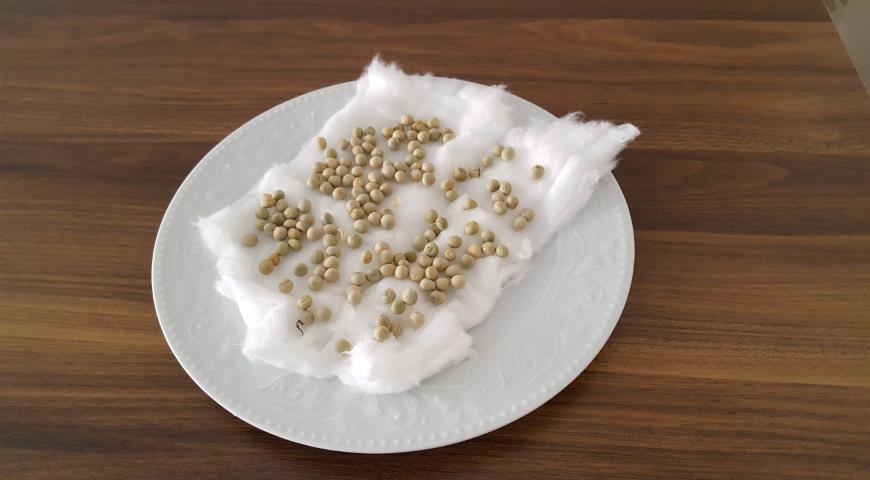 Вату равномерно уложите на дно миски более-менее толстым слоем и хорошо намочите. Если вы используете ватные диски, равномерно разложите их и также как следует увлажните. Положите семена в стакан и налейте немного воды. Оставьте так на несколько минут: это необходимо, чтобы вокруг каждого семечка образовалась водяная «оболочка». С помощью чайной ложки равномерно распределите семена по вате или ватным дискам: за счет того, что семена мокрые, они лягут на некотором расстоянии друг от друга, а не плотным комком, который будет мешать им прорасти. Накройте емкость с семенами прозрачной пленкой или стеклянной крышкой и поставьте на подоконник. Как только появятся всходы, пленку можно снять. Посадки опрыскивают 2 раза в день из пульверизатора.