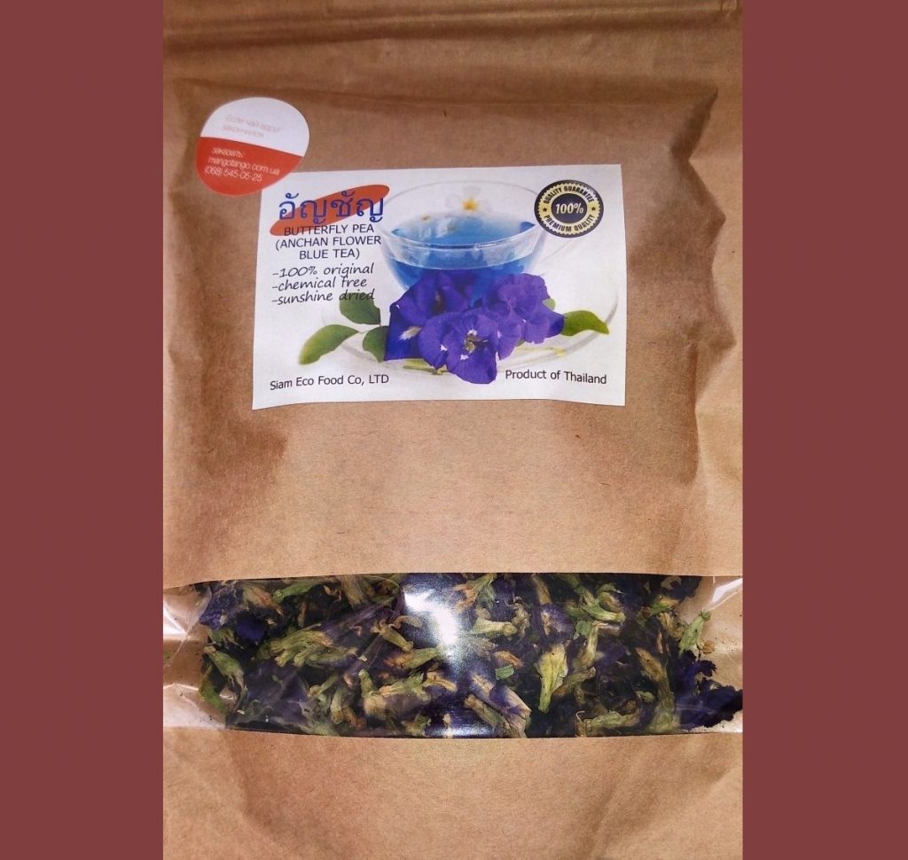 Синий чай из Таиланда традиционно производят из ярко-синих цветков многолетней вечнозеленой лианы из рода бобовых. Это клитория тройчатая, «дальний родственник» гороха, бобов, сои и люпина.